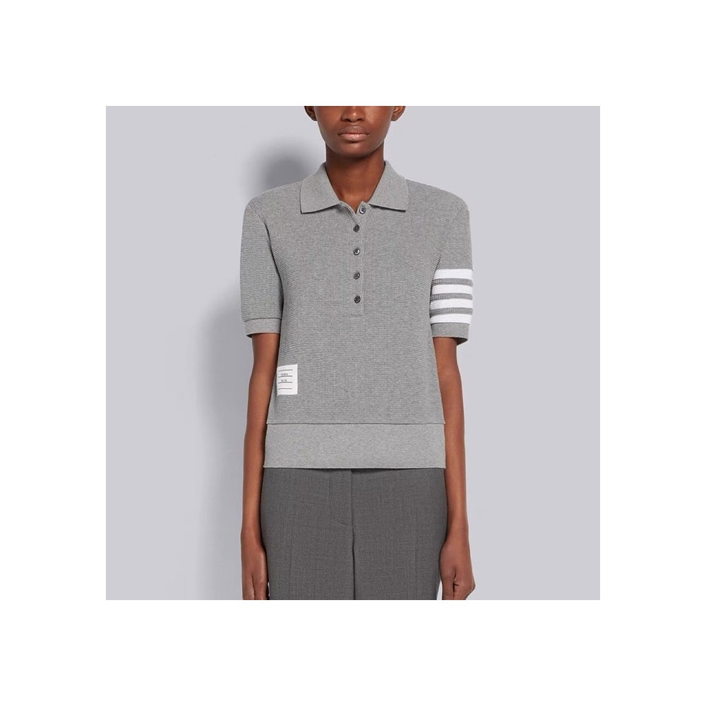 [Thom Browne] 톰브라운 그레이 컴팩트 와플 심인 4-바 쇼트 슬리브 립 커프스 폴로 FJP047A05802025 > 명품의류