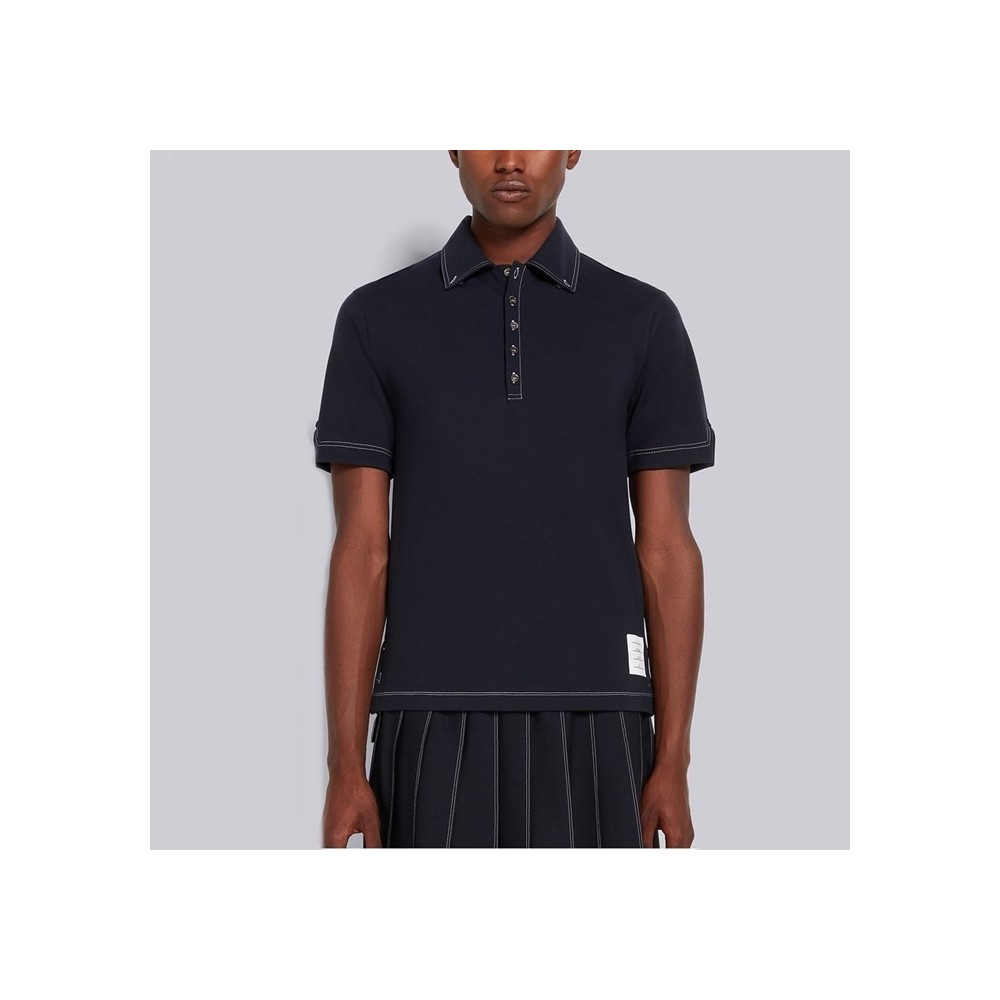 [Thom Browne] 톰브라운 네이비 울 테크 밀라노 콘트라스트 스티치 폴로 MJP141A07746415