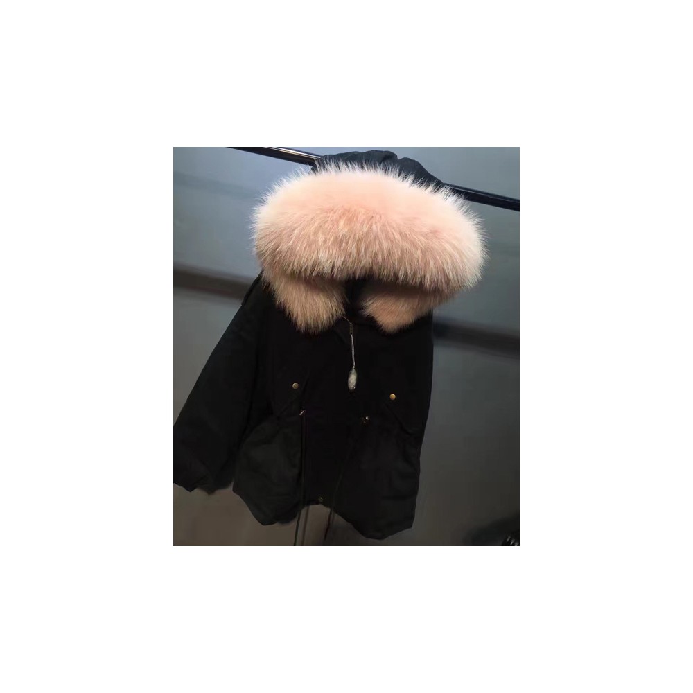 [Mr & Mrs Fur] 미스터앤미세스퍼 핑크 라쿤 퍼후드 블랙 야상 mm1