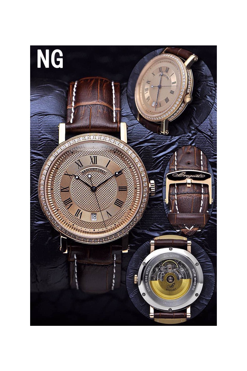 BREGUET(custom급 남성용 Swiss eta Automatic Movment,Sapphire Glass,Italy Leather Band)