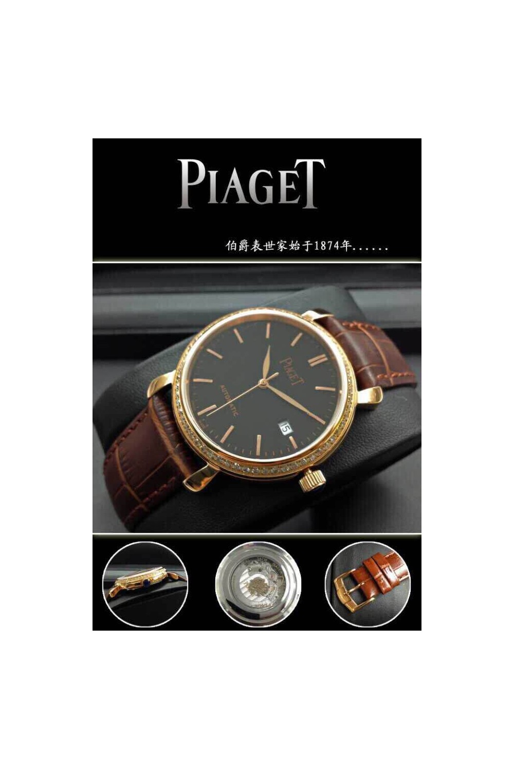 PIAGET (custom급 남성용 Swiss eta Automatic Movment,Sapphire Glass,Italy Leather Band)