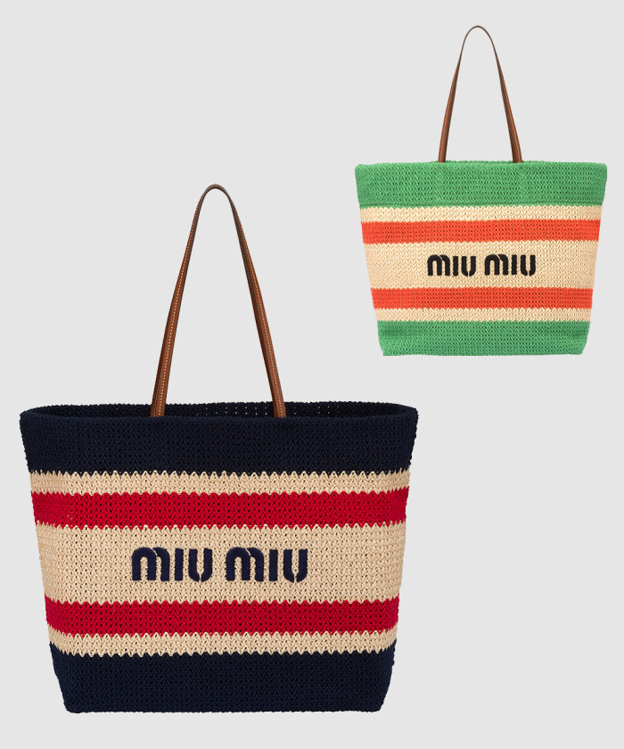[MIUMIU-미우미우]라피아 앤 코튼 토트백 5BG228