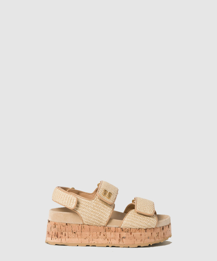 [MIUMIU-미우미우]라피아 이펙트 우븐 패브릭 플랫폼 샌들 5XZ480