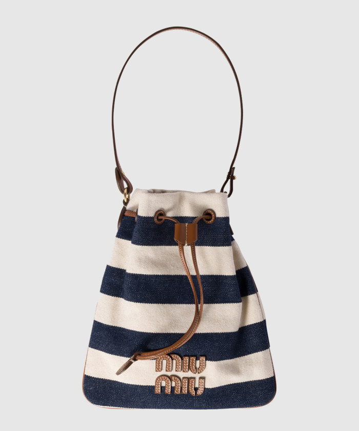 [MIUMIU-미우미우]스트라이프 패브릭 드로스트링 파우치 5ND016